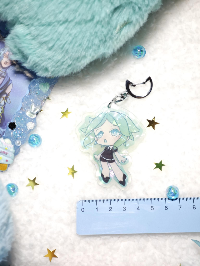 The keychains have a pearlescent finish to them, making them shimmer and glitter in the light, just like the hair of the gems in the show.
